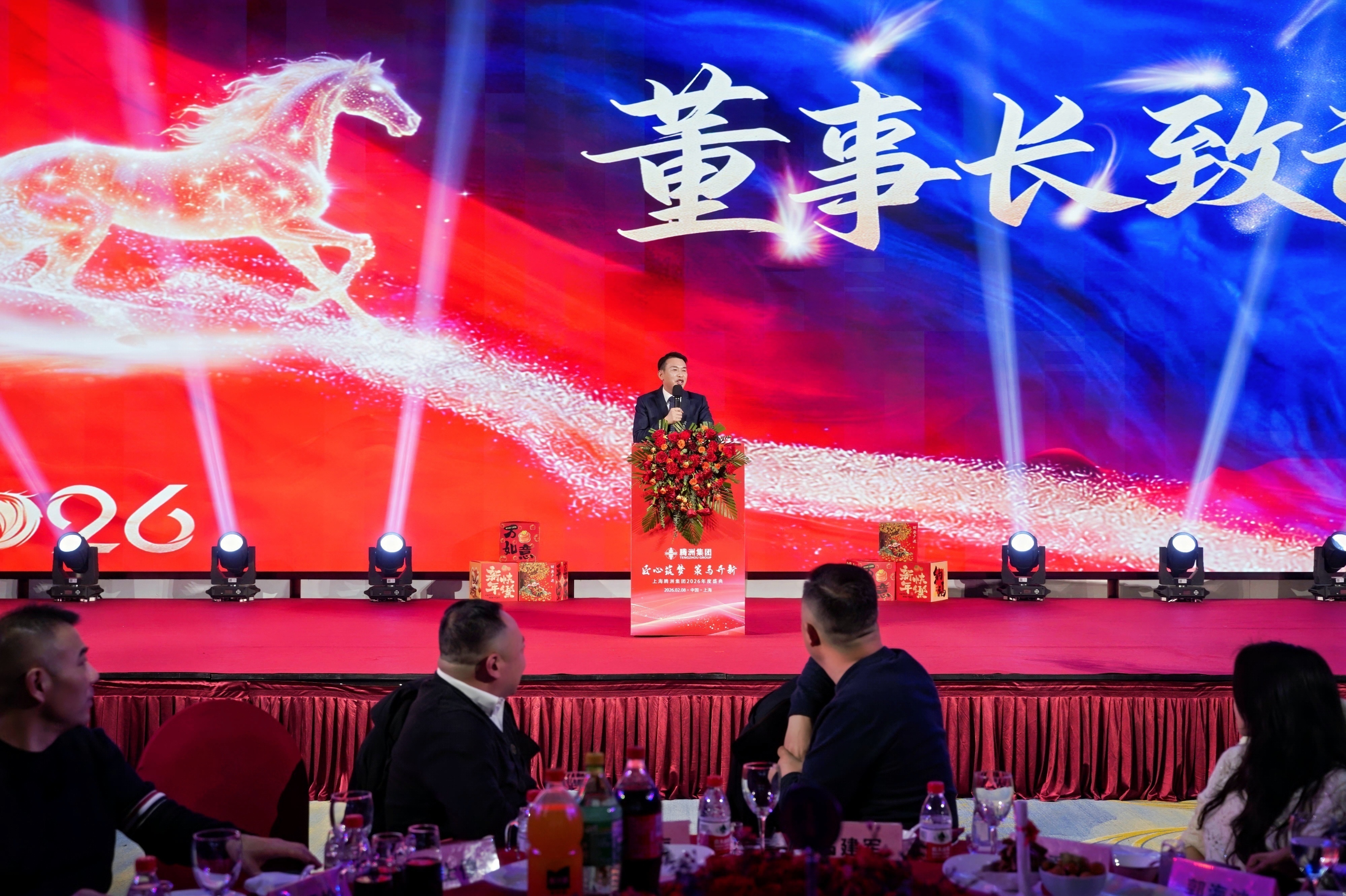 2月8日晚,集团“匠心筑梦·策马开新”迎新春晚宴在嘉定区瑞立酒店瑞立厅隆重举行。集团领导、全体员工及长期合作伙伴齐聚一堂,共迎新春,共叙奋斗,共绘未来。董事长周昌海出席并致辞。